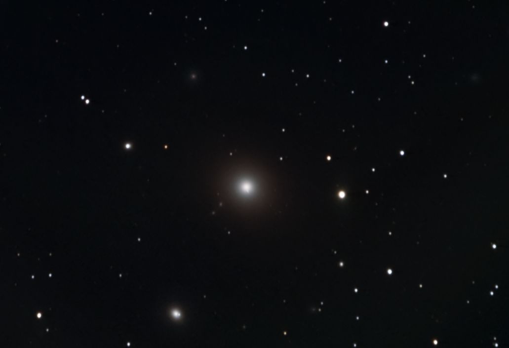 M87 is a giant massive type E1 elliptical galaxy that is one of the largest members of the Virgo Galaxy Cluster. M87 has a supermassive black hole at its core that is a source of radio emission and X-ray emission. The bright radio source is called Virgo A, or 3C 274. A jet can be seen coming from the core of the galaxy, which is undoubtably caused by the black hole. The jet is about 4100 light-years in length. The radio emission, X-ray emission and jet are all the result of material that is being consumed by the supermassive black hole. M87 was discovered in 1781 by Charles Messier. It is rated at magnitude 8.6.